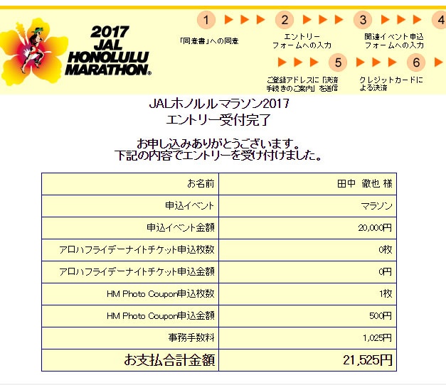 それとホノルルマラソン自体の参加費であるエントリー料が必要になります。