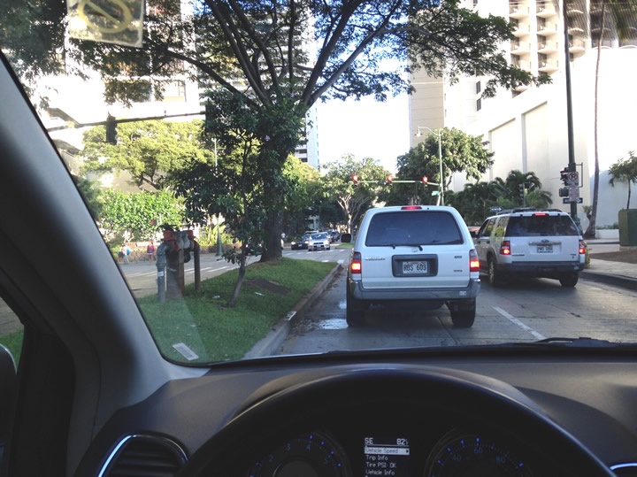 ハワイでお金を払って車を止めたのは、ワイキキ中心部の駐車場とハナウマベイくらいですね。