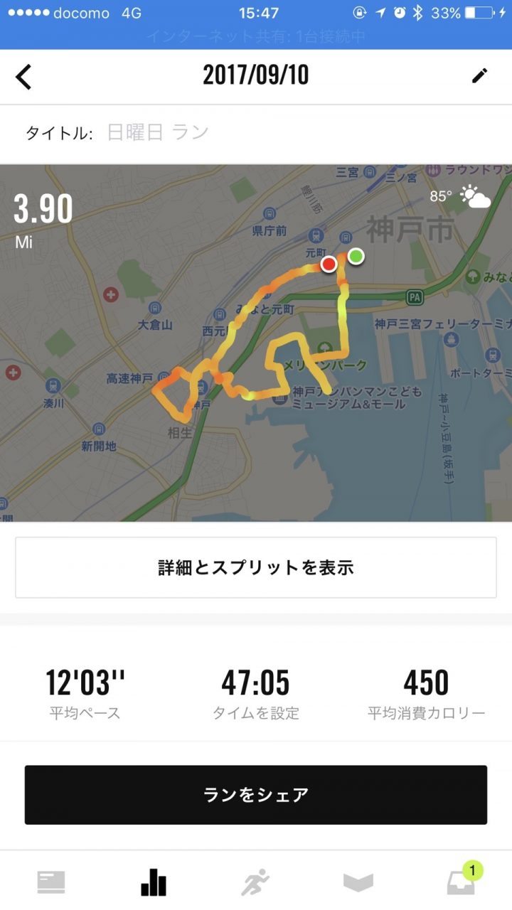 本日はまたジムをスタートし、ハーバーランド、メリケンパークに!