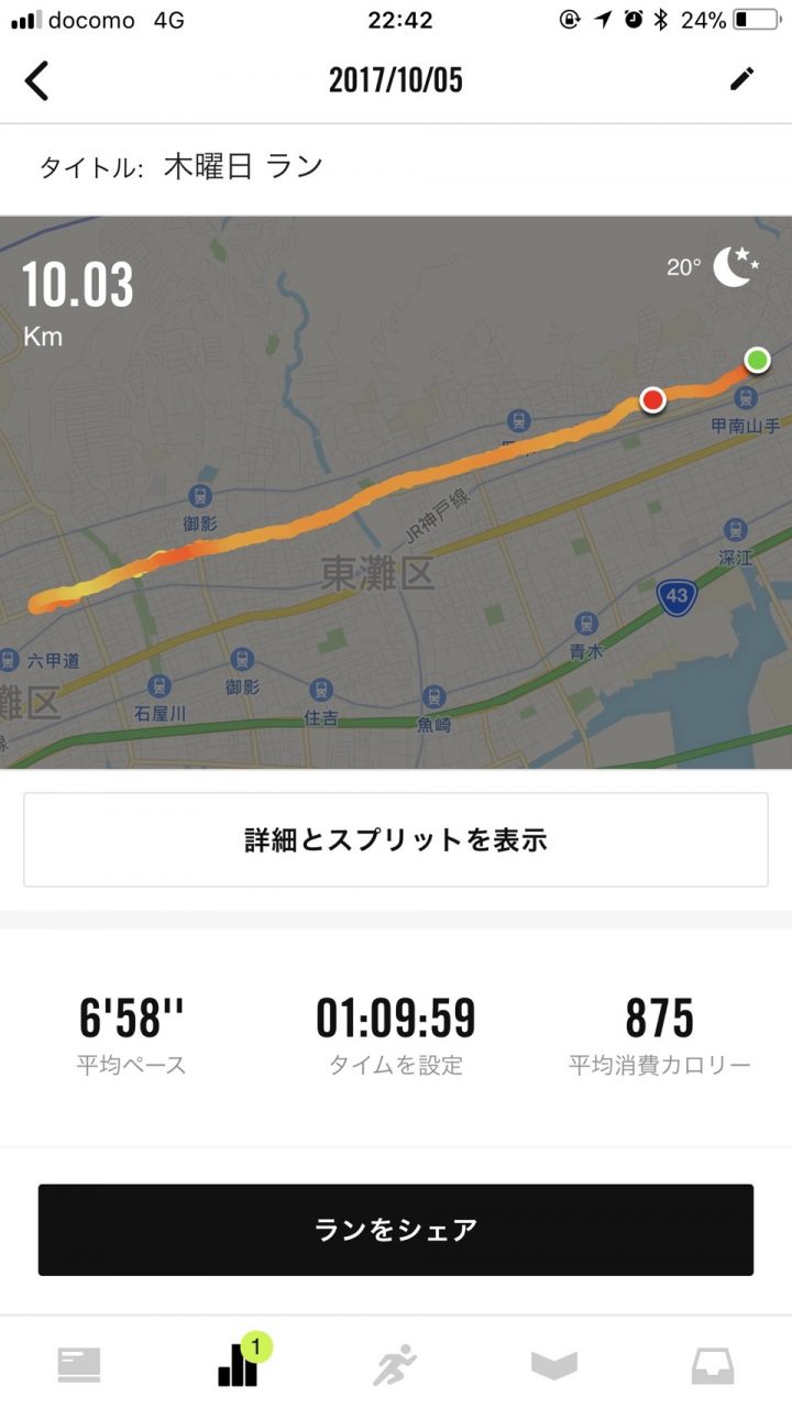 夜に10キロのラン。