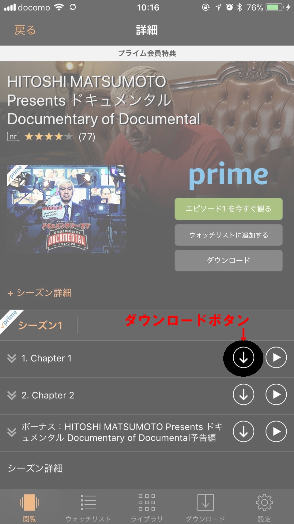 見たい映画を選んで、ここのダウンロードボタンを押します。