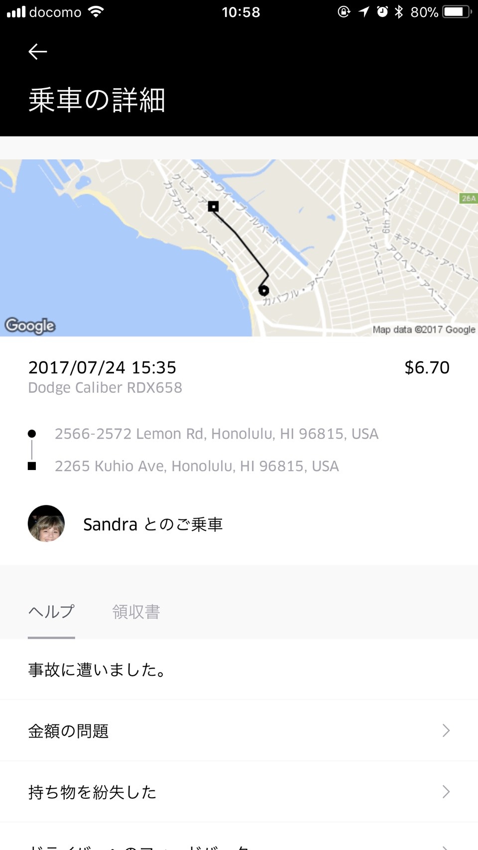 日本では東京でしか動いていないuberですが、当然ハワイでは普通に呼べます。