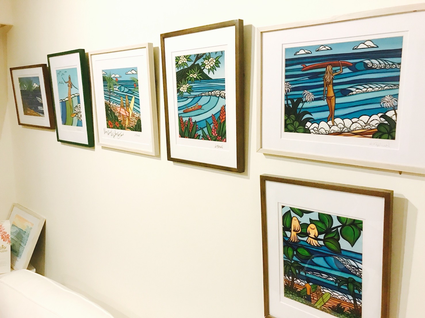 僕はこのヘザーブラウンさんの絵をハワイに行くたびに1枚1枚と買っており、リビングも、、、、