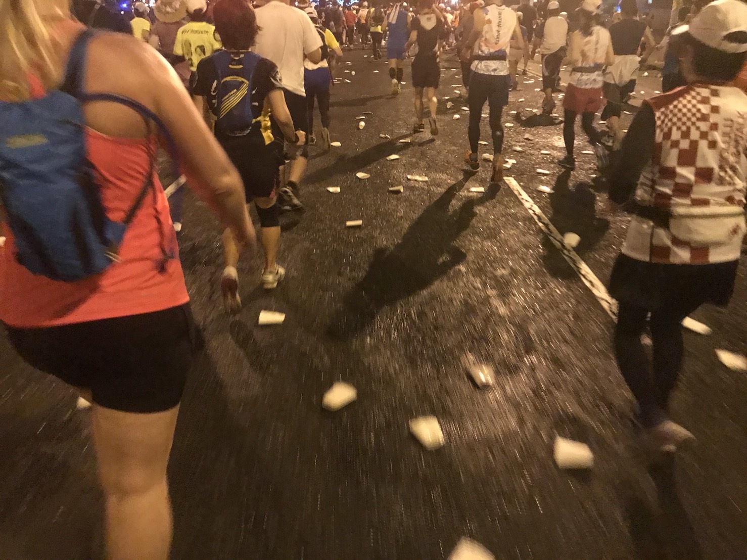 給水所では、飲んだコップは周りを見て沿道に捨てるなりしてコース上に水をまき散らさないようにしましょう。
