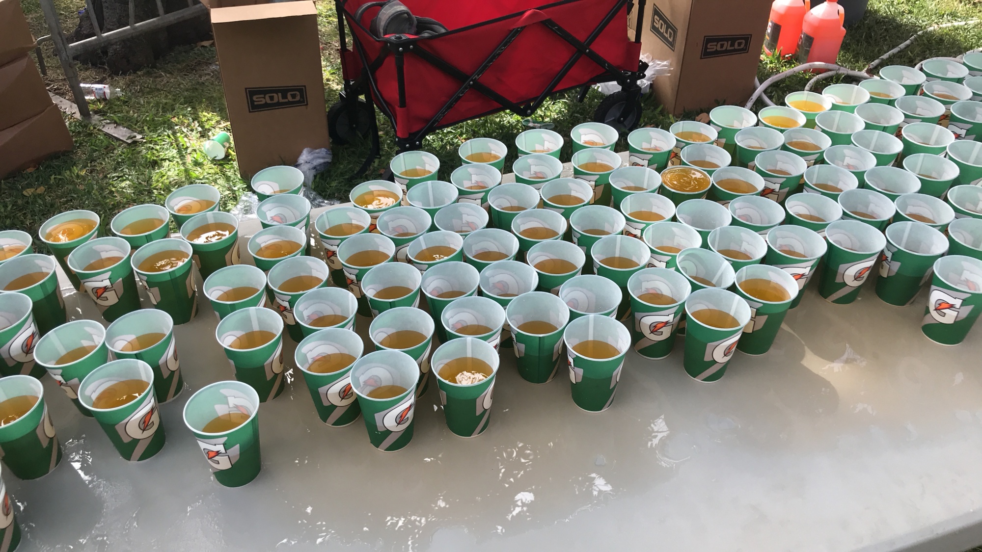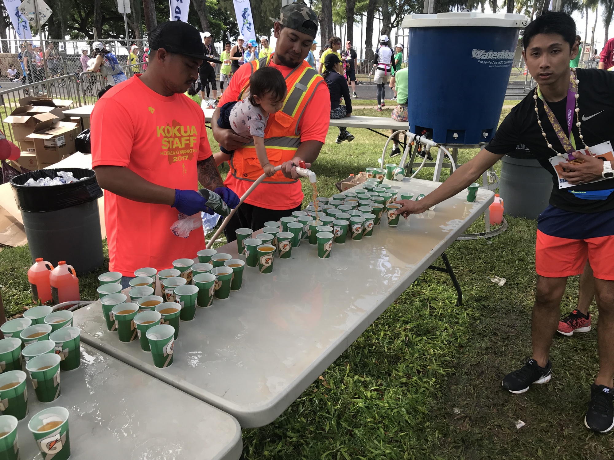 ゴール地点でも、さんざん飲んだゲータレードが配られています。