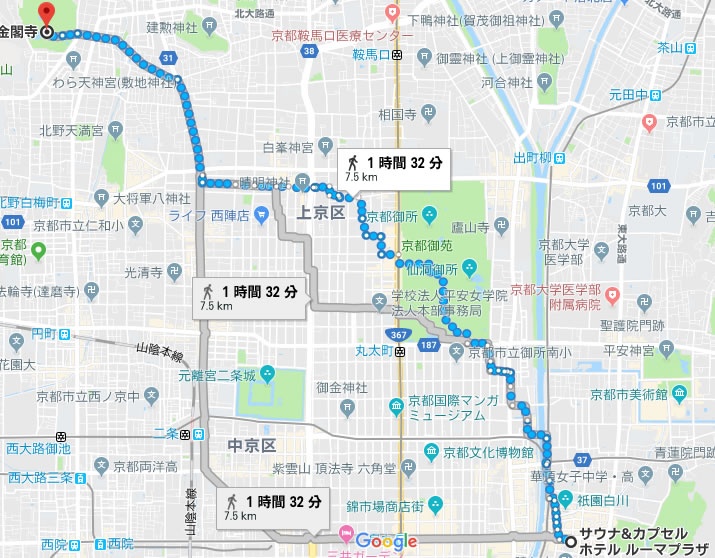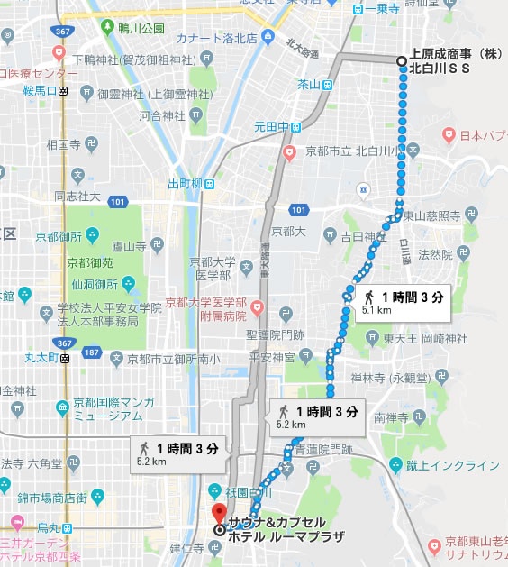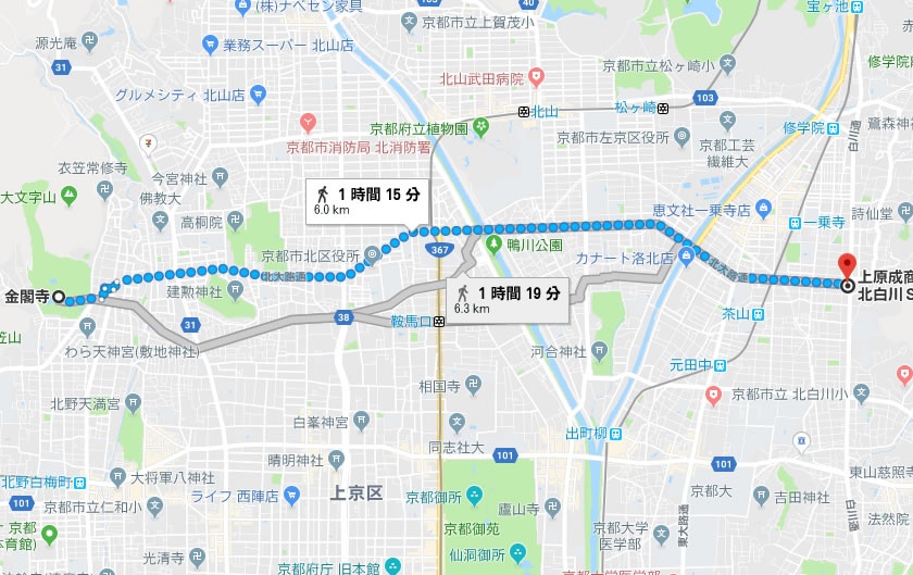 ここからスタートしてだらだら金閣寺までまずは走ります。