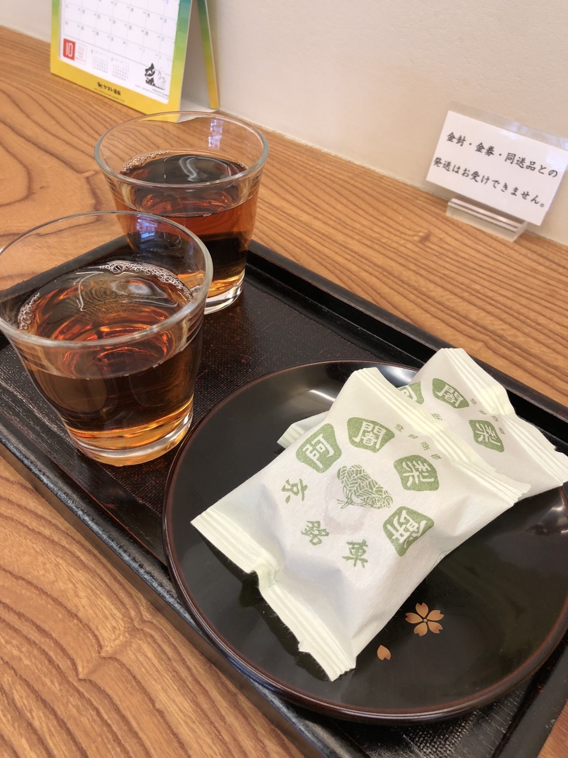金閣寺の前で阿闍梨餅を食べて体力回復です。