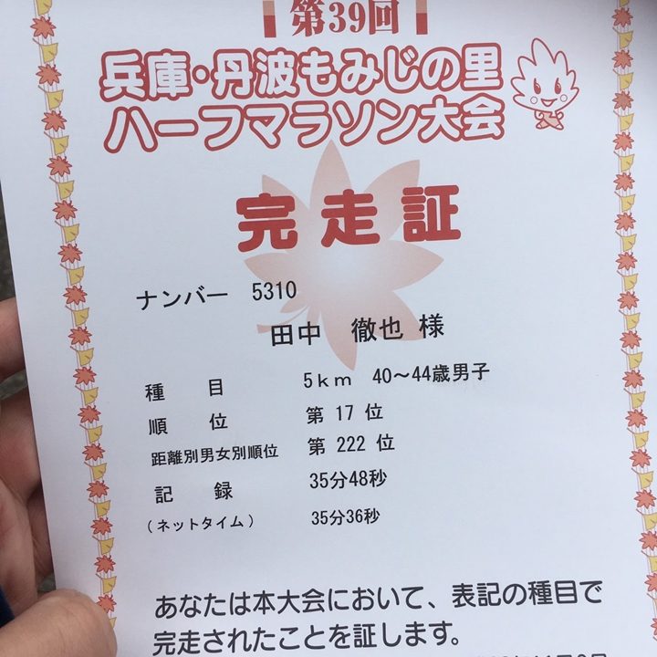 本日11月6日、日曜日朝6時。 はい、お薬の時間です。 ここ2週間風邪が治らない私は医者からもらったくすりを飲む。 そして、車で1時間半かけてやってきたのは丹波。 紅葉の里ハーフマラソンに出場するためだ。 (風邪により、...