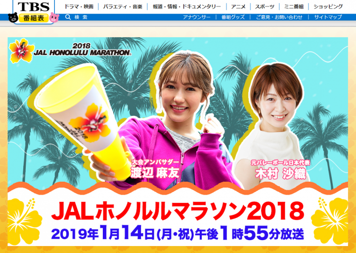 毎年恒例ホノルルマラソンのテレビが今回も放送されます。 走った方は、もしかしたら映っているかもですよ! 当日のことを思い出すためにも、ぜひ放送をチェックしてみましょう! 番組情報 JALホノルルマラソン2018 放送日時...